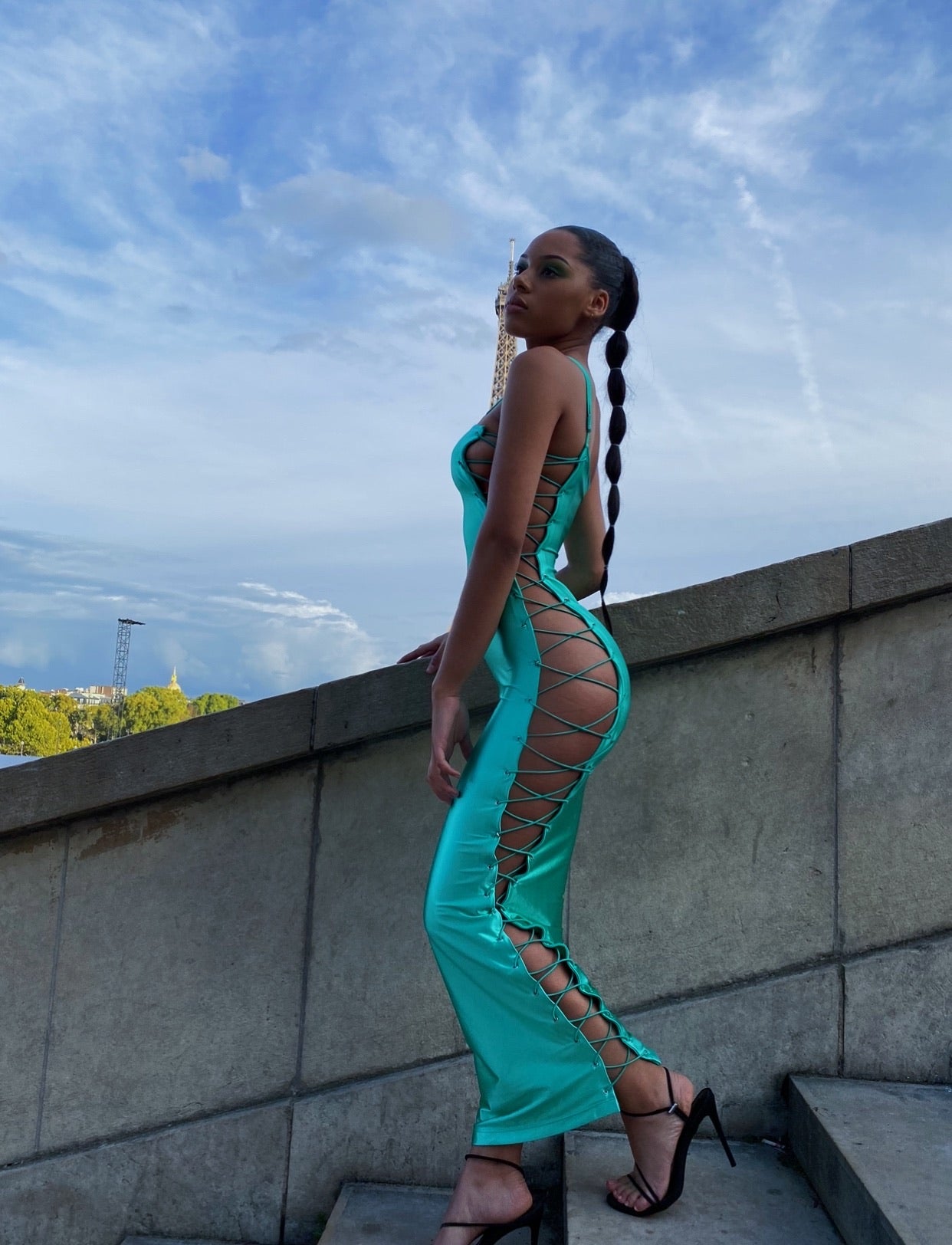Carrie, brought back in her sexiest form. Made to exposé the entire side the body. Exposing side boob, waist, hip, leg. Tie this beauty all the way down or leave it half way and serve leg!
